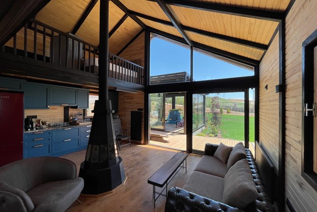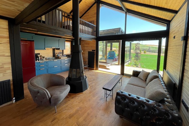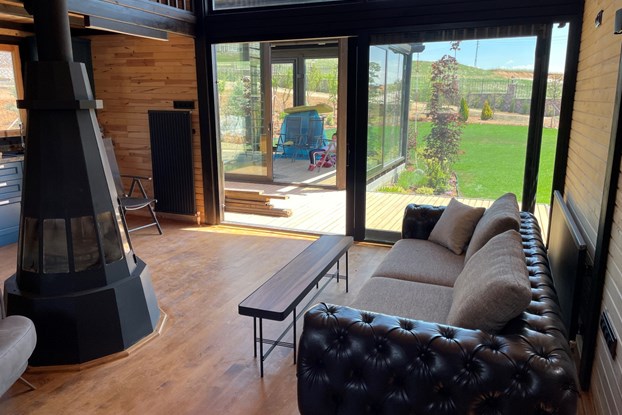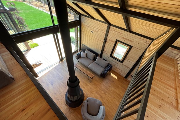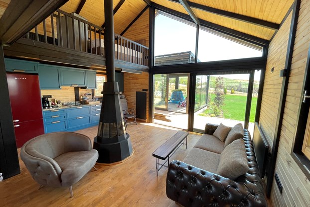Our Libra cabin model, which we designed as a spacious and one bedroom, is produced with a modern architectural concept. While the sun is in your living space with its wide windows and joinery, we increase your comfort with special design details on the loft floor.